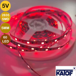 5V 5mm Kırmızı 2835Smd IP20 60Ledli Şerit Led (5 Metre)