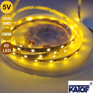 5V 5mm Sarı 2835Smd IP20 60Ledli Şerit Led (5 Metre)