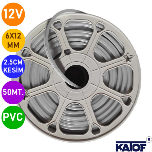 12 Volt 2.5cm Kesim 6x12mm PVC Esnek Neon Led (50 Metre)