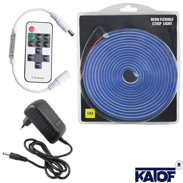 12V Mavi 6x12mm Neon LED 5 Metre Set – RF Kumandalı Kontrol Modülü + 3A Priz Tipi Adaptör