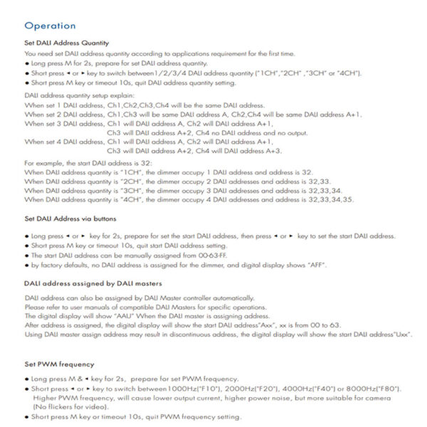 - DALI adresleri otomatik ya da manuel atanabilir.