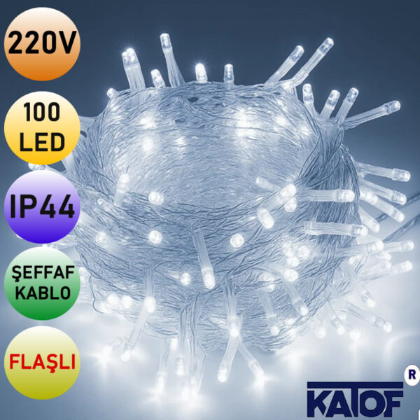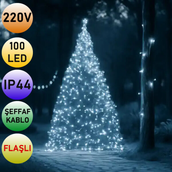 220V 100Ledli Flaşlı IP44 10mt. Şeffaf Kablolu Dekoratif İp Led
