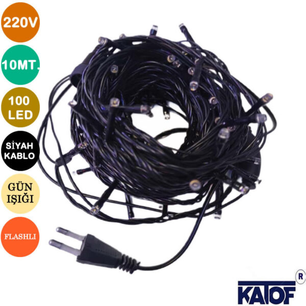 220V Gün Işığı 100Ledli Flashlı IP65 10mt. Siyah Kablolu İp Led
