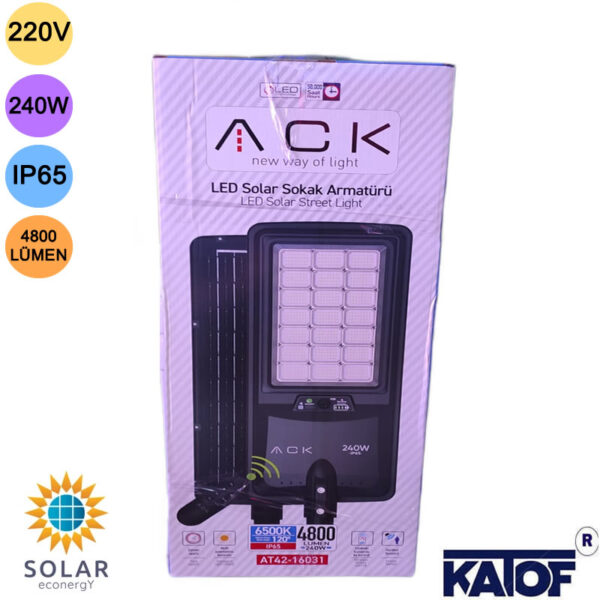 ACK 240W IP65 6500K Solar Enerjili Sokak Armatürü