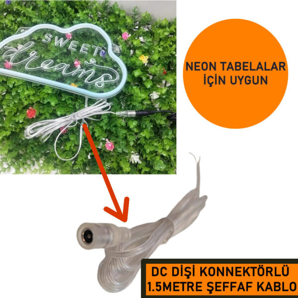 DC Dişi Konnektörlü 22AWG 1.5 Metre 5.5×2.1mm Şeffaf Kablo
