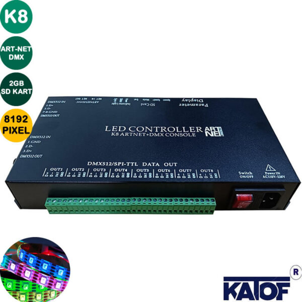 K8 Pixel Led Denetleyici Konsol 8 Kanal DMX512-SPI-TTL Art-net