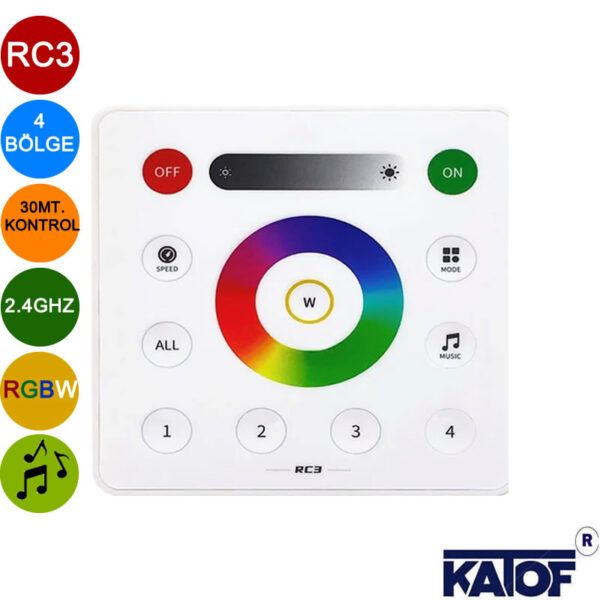 RC3 RGBW 4 Bölge Led Kontrol RF Dokunmatik Kumanda