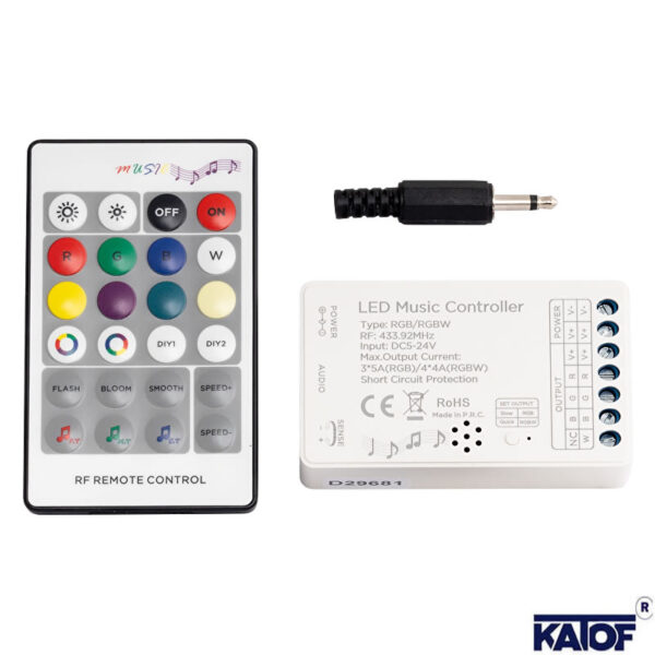 - RGB / RGBW LED Müzik ve Sese Duyarlı Kontrol Cihazı ve Kumandası, LED aydınlatmaları ses veya müzikle senkronize ederek dinamik ışık efektleri oluşturmak için kullanılır. Bu cihazlar özellikle eğlence alanlarında, partilerde, araç içi dekorasyonlarda ve sahne aydınlatmalarında tercih edilir.