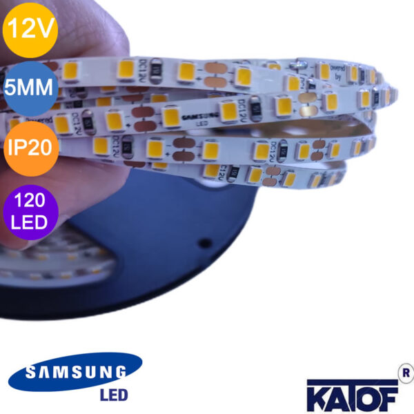 - Samsung 12V 5mm 2835 SMD Gün Işığı (3000K) IP20 120 Ledli Şerit LED genellikle iç mekân dekoratif ve genel aydınlatma uygulamalarında kullanılır. 2835 çipler yüksek verimli ve parlak olduğu için hem dekor hem de fonksiyonel aydınlatma sağlar.