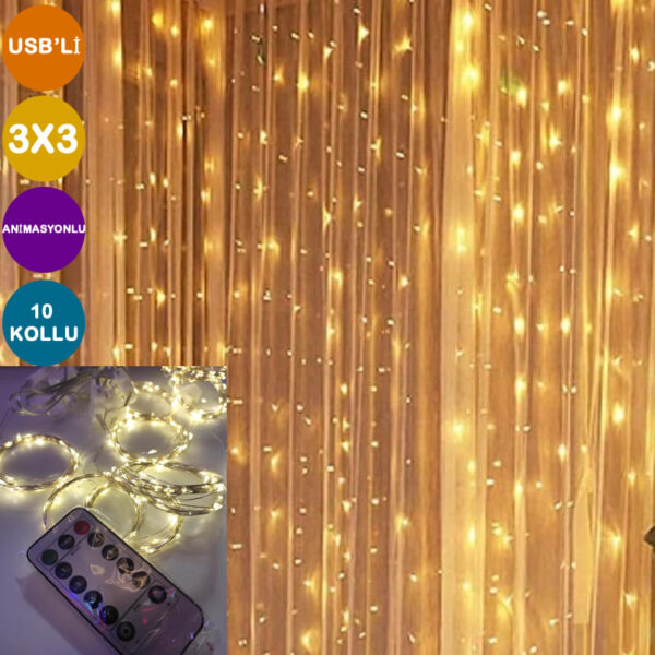 Usb’li 3×3 Animasyonlu Perde Led Gün Işığı 8 Mod