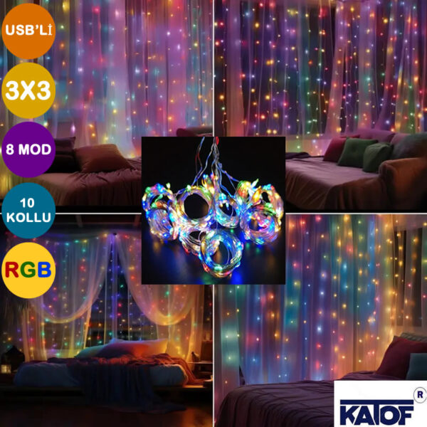 Usb’li 3×3 Animasyonlu Perde Led RGB 8 Mod